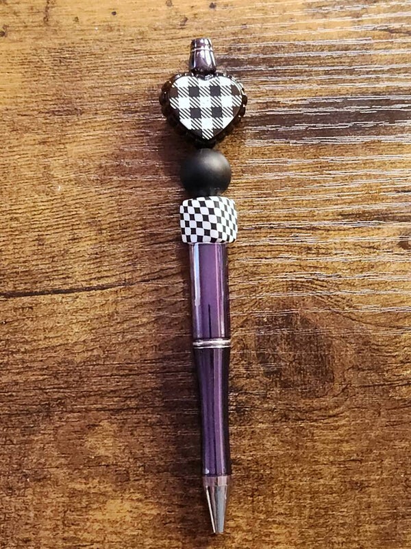Checkered Heart & Rhinestone Beaded Pen Collection