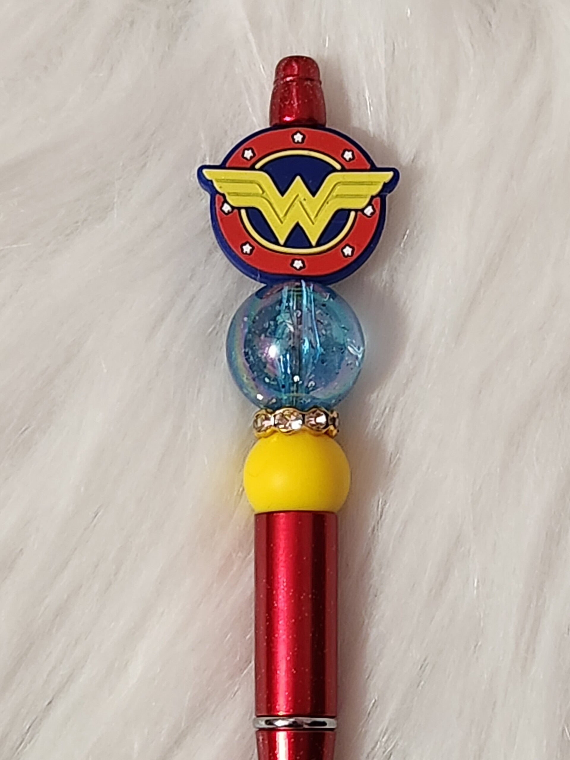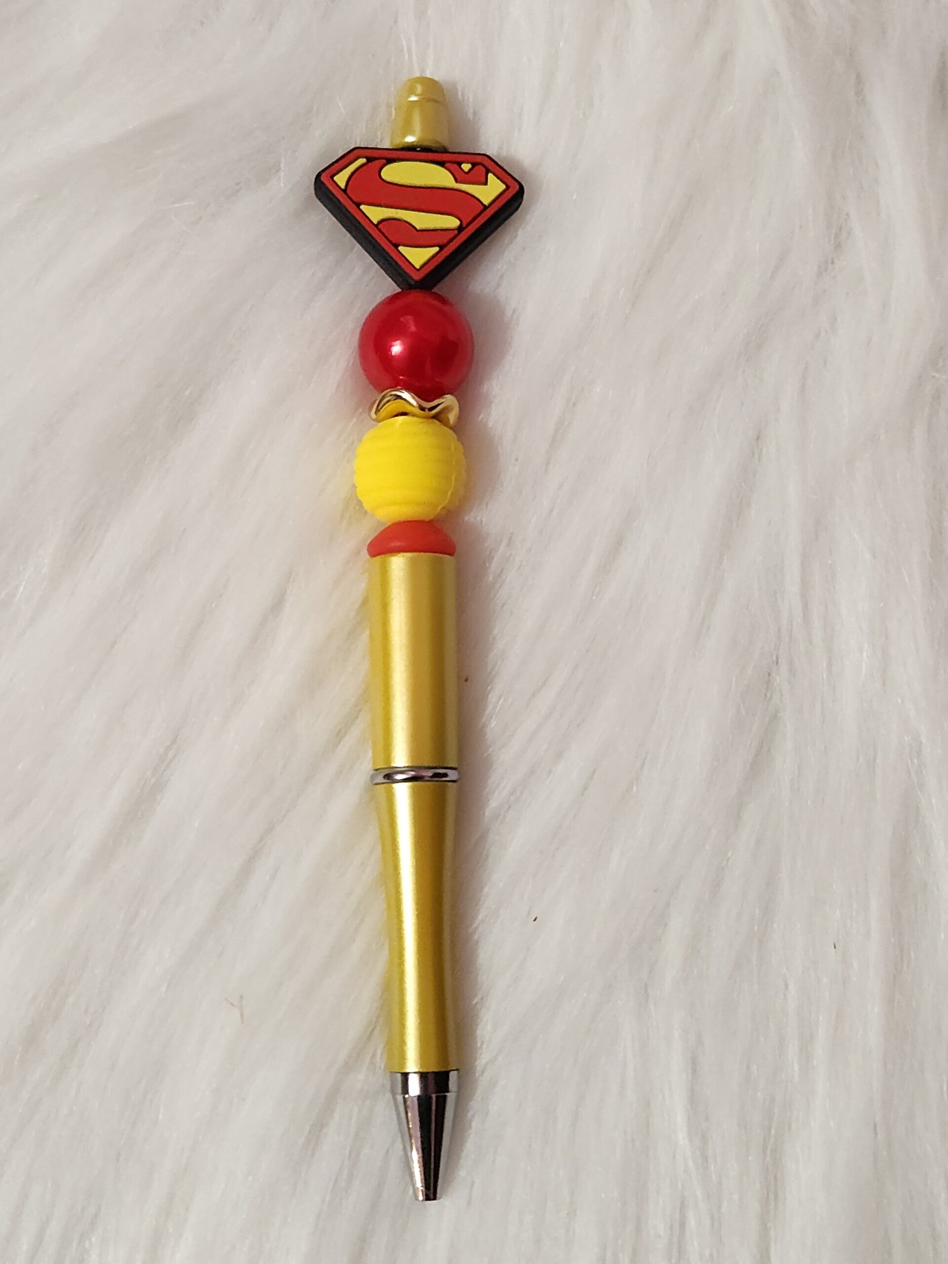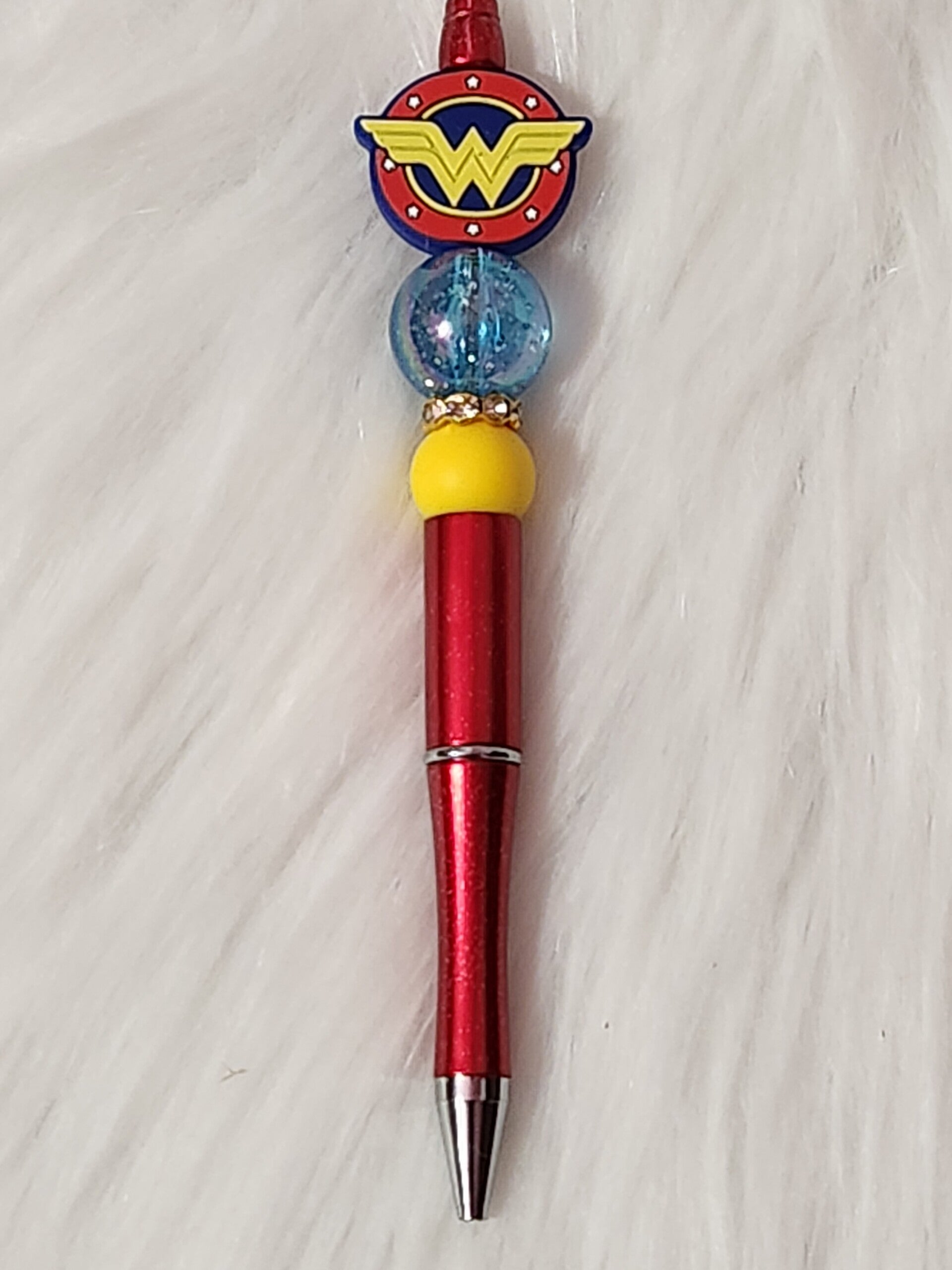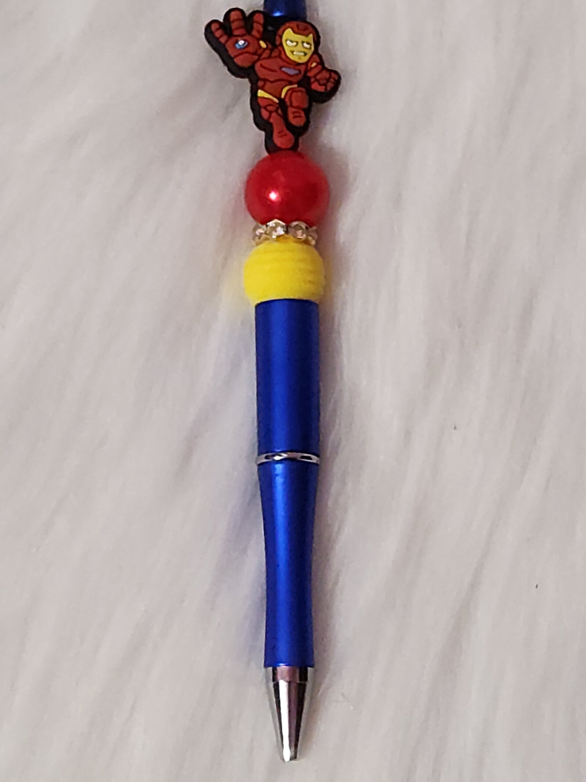 Keywords: Custom Beaded Pens, Super Hero Stationery, Hand-made Pens, Batman Pen, Superman Pen, Wonder Woman Gift, Iron Man Office Supplies, Spiderman Accessories, Marvel Fan Gift, DC Comics Stationery, Beaded Ballpoint Pens, Superhero Party Favors, Unique Teacher Gifts.